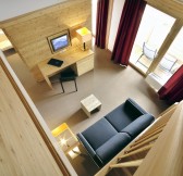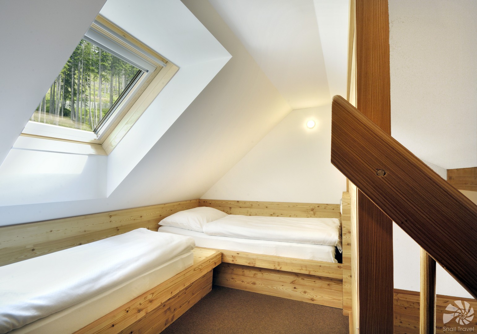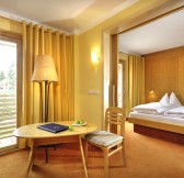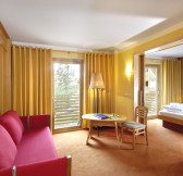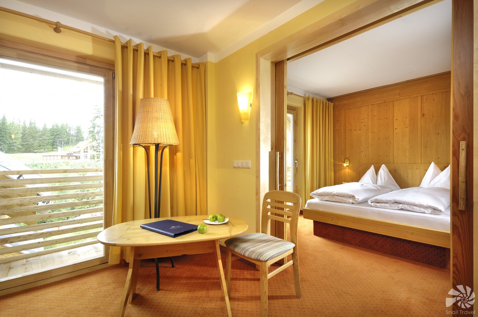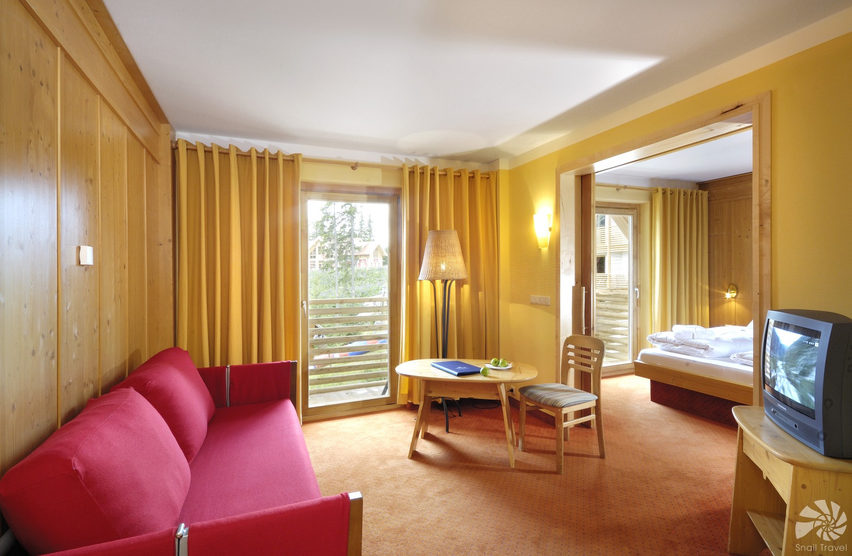 A: 2-lůžkové pokoje (cca. 19 m2) pro 2 osoby – dvoulůžko B: 2-4lůžkové rodinné pokoje Klassic (cca. 27 m2) pro 2 dospělé a 2 děti – dvoulůžko a palanda pro děti C: 2-4lůžkové rodinné pokoje Royal (cca. 27 m2) pro 2 dospělé a 2 děti – dvoulůžko a rozkládací pohovka nebo palanda pro děti D: 2-5lůžkové rodinný mezonet Deluxe (cca. 40 m2) pro 2 dospělé a 3 děti – obytná část s dvoulůžkem se rozkládá ve 2 patrech, oddělená ložnice pro děti E: 2-4lůžkové rodinné suite Kristall (cca. 32 m2) pro 2 dospělé a 2 děti – obytná část s dvoulůžkem pro rodiče a oddělená kóje pro děti F: 2-4lůžkový rodinné suite Royal (cca. 38 m2) pro 2 dospělé a 2 děti – obytná část s dvolůžkem, oddělená kóje pro děti G: 2-4lůžkový rodinné suite Deluxe (cca. 70 m2) pro 2 dospělé a 2 děti – obytná část s dvolůžkem, oddělená ložnice pro děti - všechny pokoje mají sprchu / WC, balkón nebo terasu, satelitní TV, telefon, některé s trezorem
