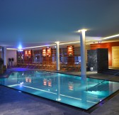 Acquapura SPA o velikosti 2.000 m2 - bazén, venkovní vyhřívaný bazén, dětský bazén s tobogánem, vířivka, finská sauna, biosauna, aromatická pára, ledová lázeň, horizontální solárium, relaxační koutek s lehátky, kneippův chodník, masáže, kosmetické služby, posilovna, sál pro aerobic s programem, vodní gymnastika, vnitřní umělá lezecká stěna pro děti, biliár, šipky, stolní tenis, stolní fotbal. župan a osuška volně k dispozici