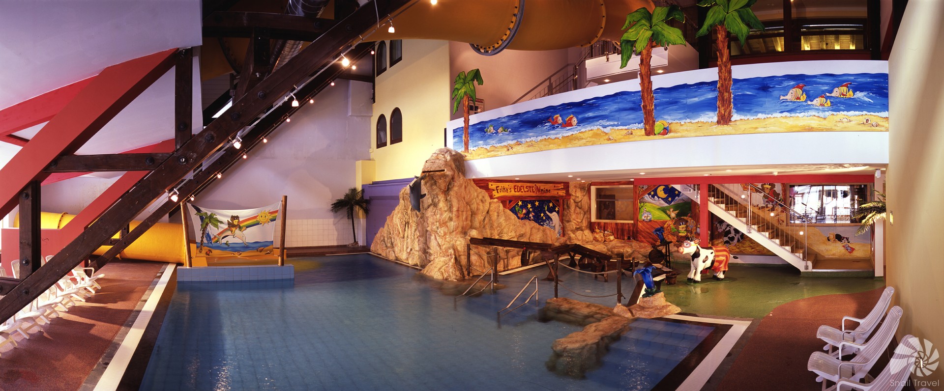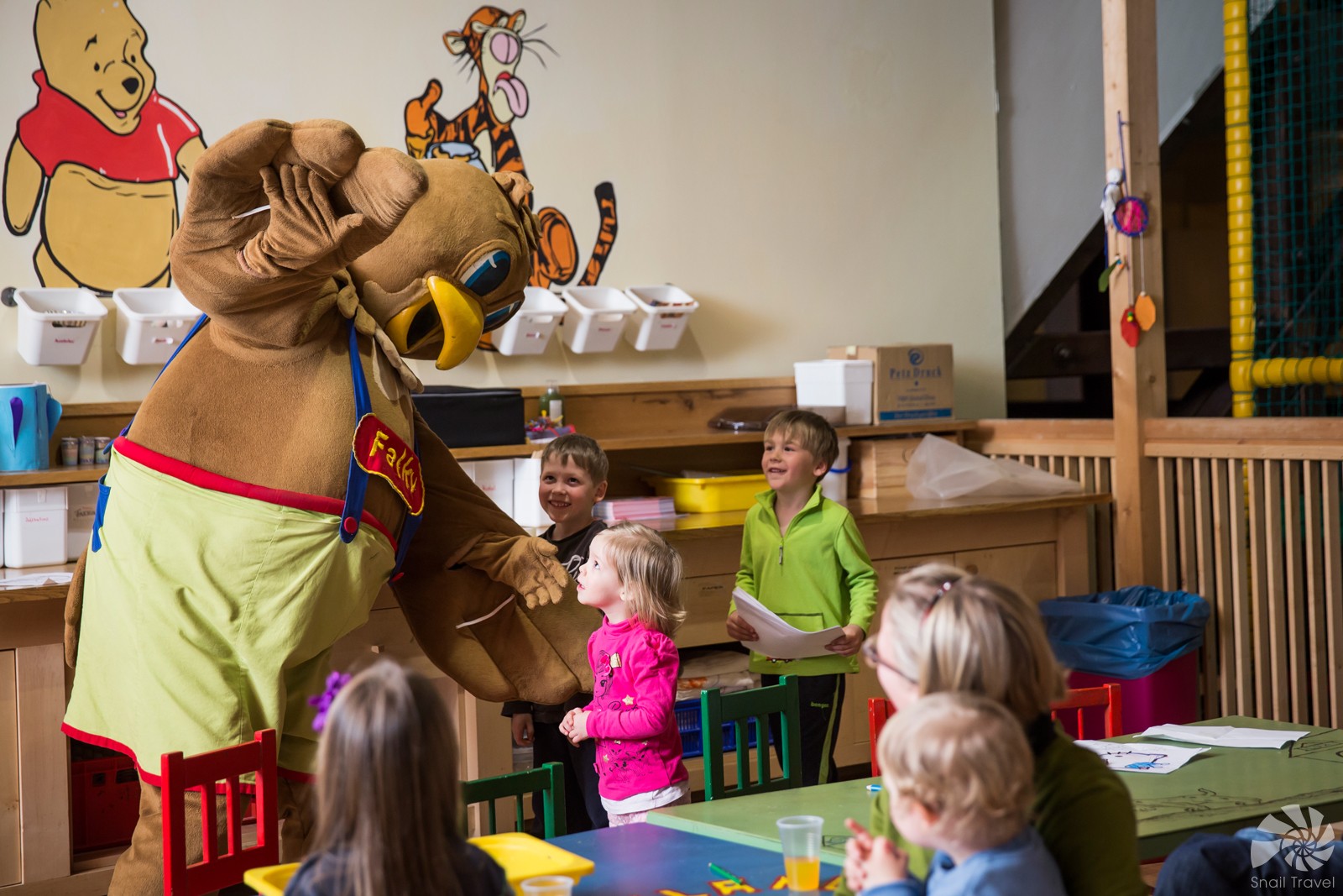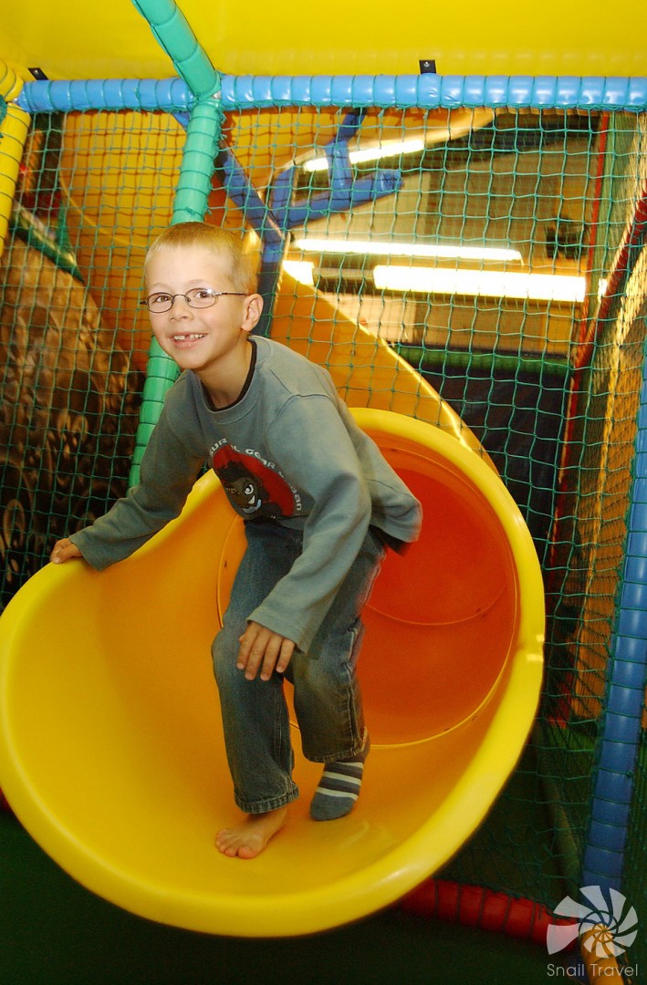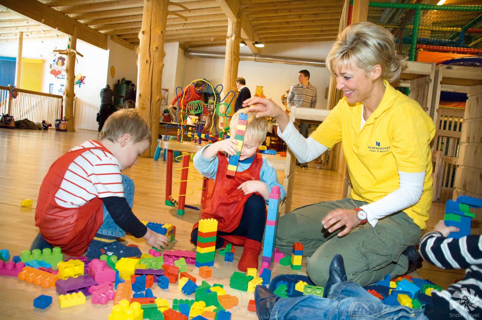 Baby-World (s hernou a lezením), ohřívač lahví, přebalovací pult, dětská vanička, za vratnou zálohu: baby telefony, nosiče na záda, kočárky. (nutno hlásit předem), Falky Acqua-World s klouzačkami a bazénkem, Adventure-World (dvoupatrové šplhadlo).