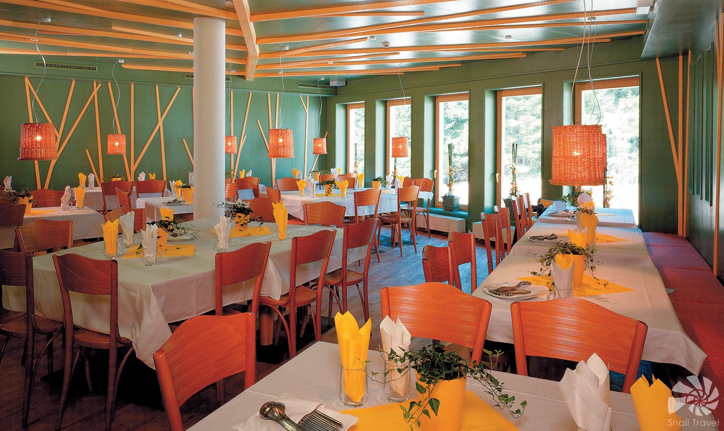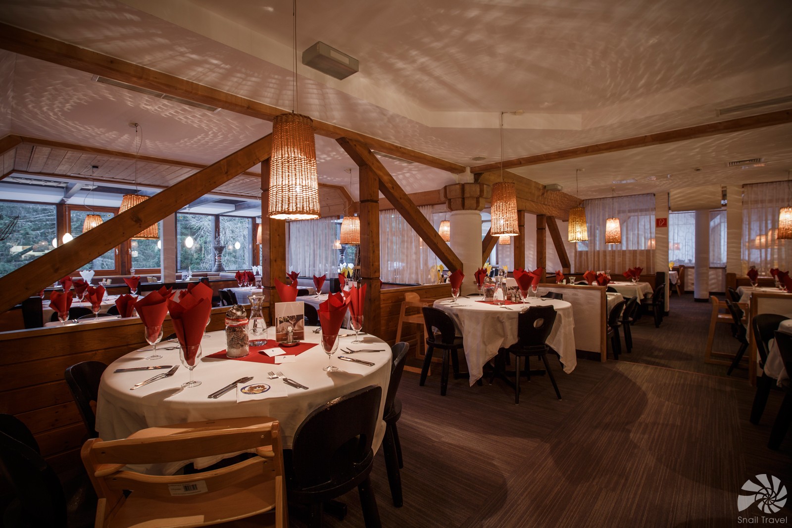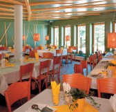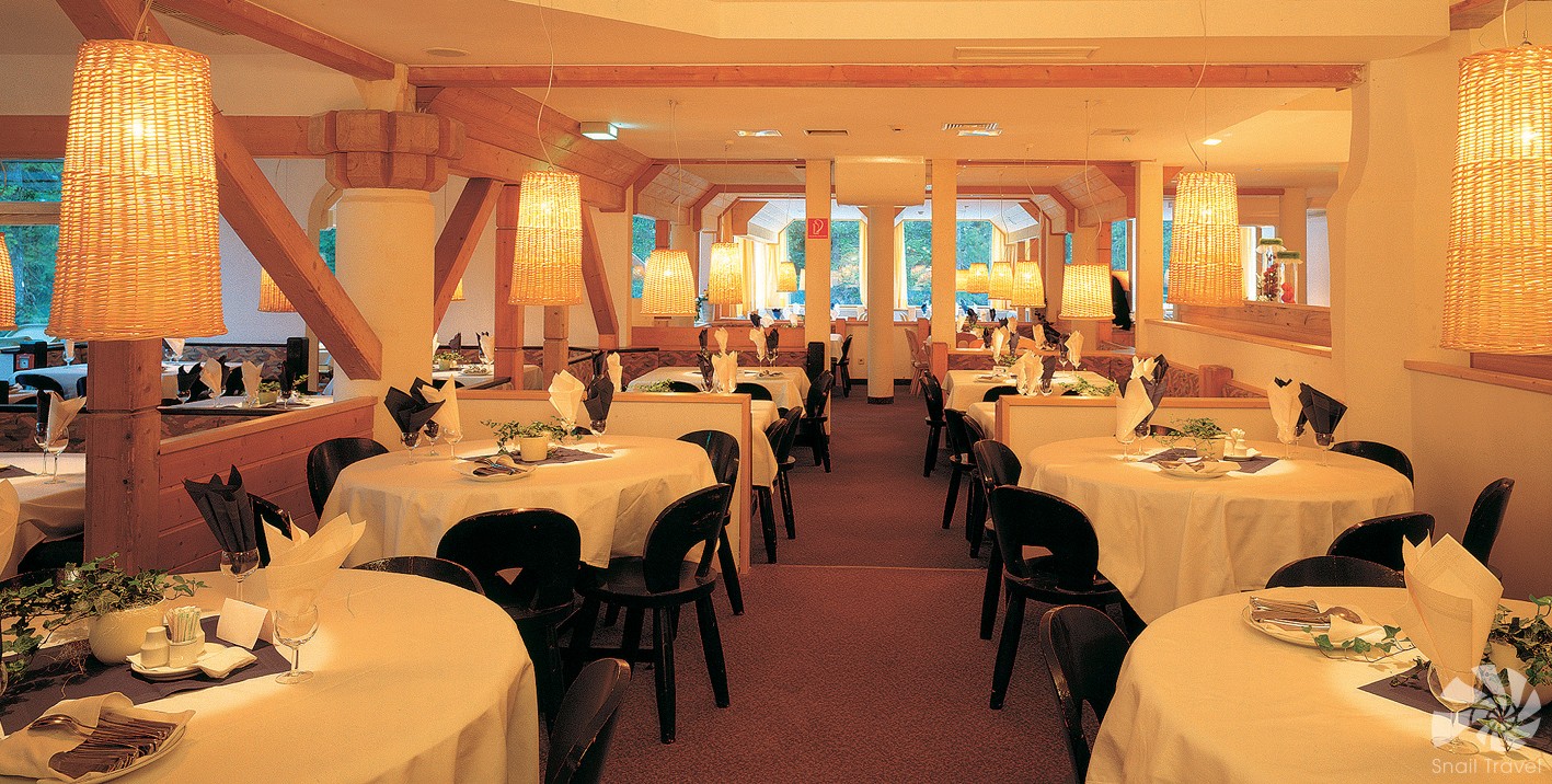 plná penze PLUS - snídaňový bufet s biokoutkem, polední "obídek" s nápoji zdarma, odpolední dezertový bufet, tématické večeře formou bufetu s náhledem do kuchyně (předkrm, hlavní jídlo, salát, desert), nápoje (i pivo, víno, nealko) během večeře zdarma, uvítací přípitek, 1x týdně galavečeře